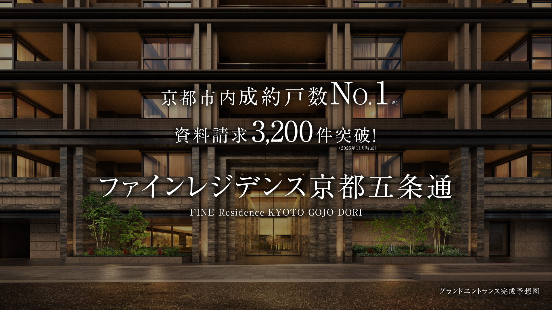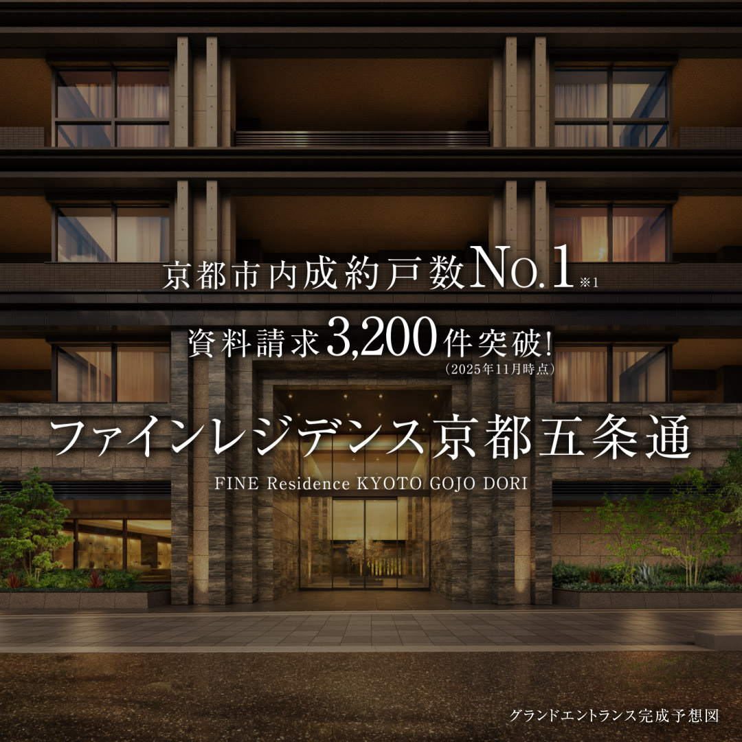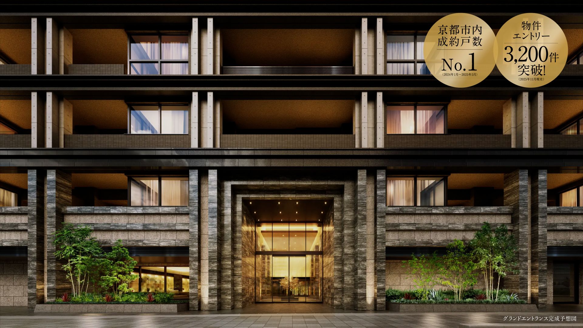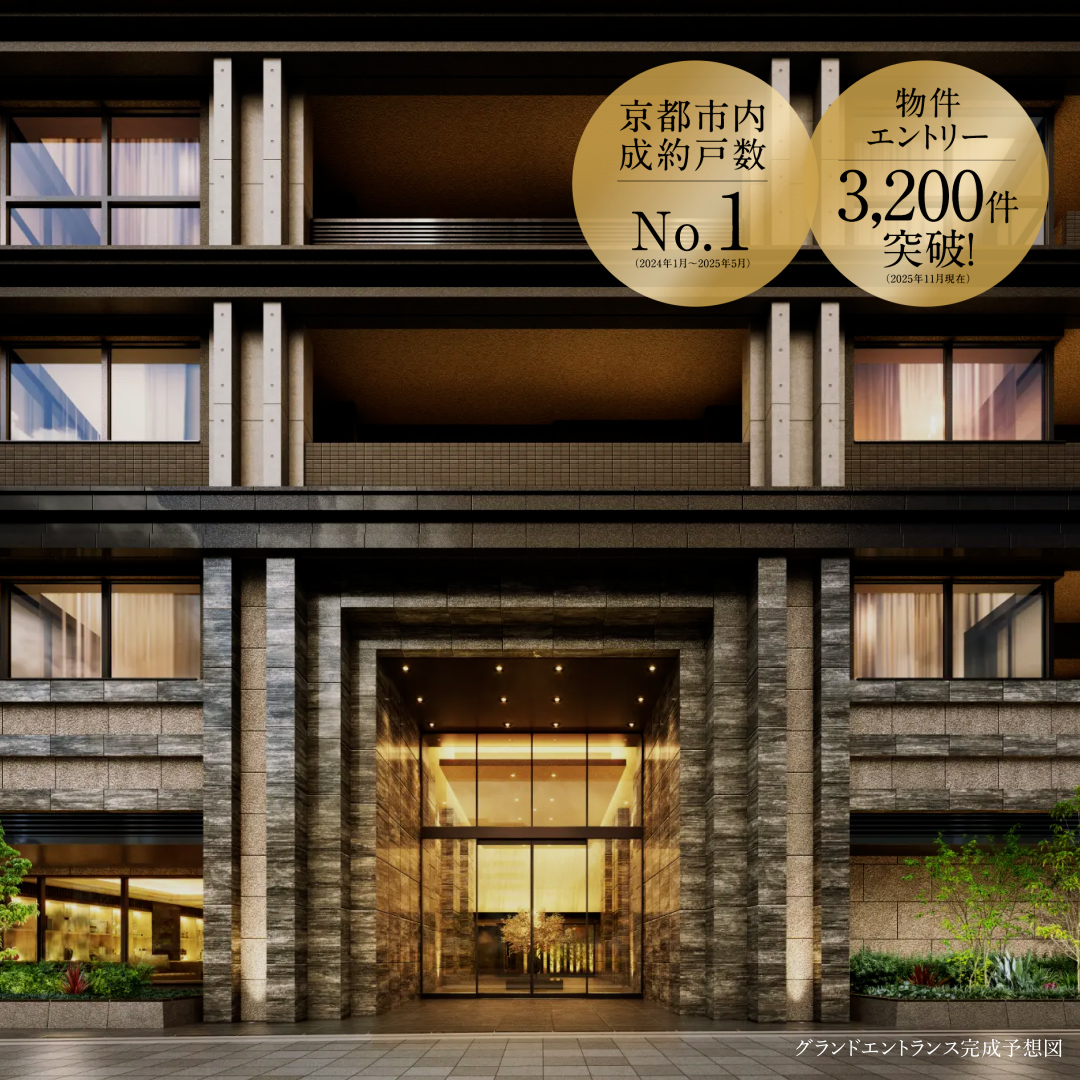 - ※1 本件は京都市の新築分譲マンション(投資⽤を除く)において2024年1⽉〜2025年5⽉の成約⼾数No.1です。(2025年8⽉MRC調べ)