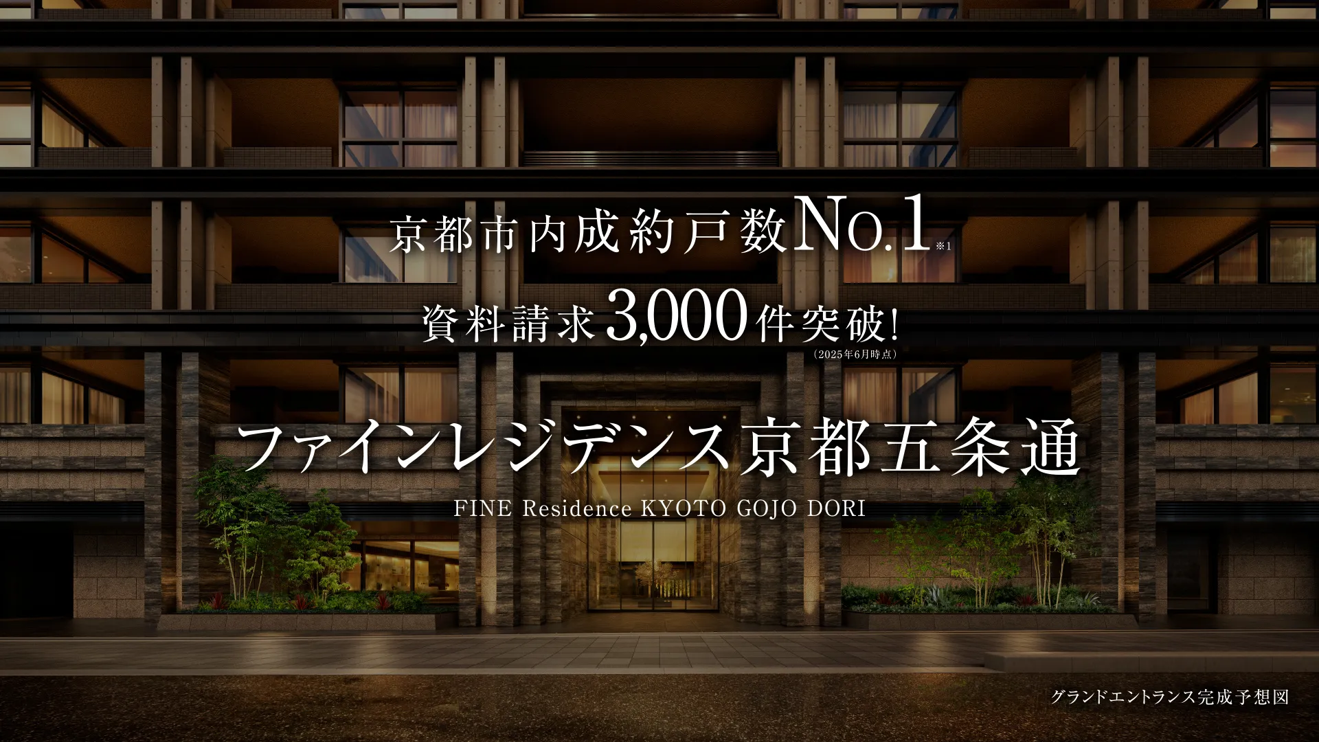 - ※1 本件は京都市の新築分譲マンション(投資⽤を除く)において2024年1⽉〜2025年5⽉の成約⼾数No.1です。(2025年8⽉MRC調べ)