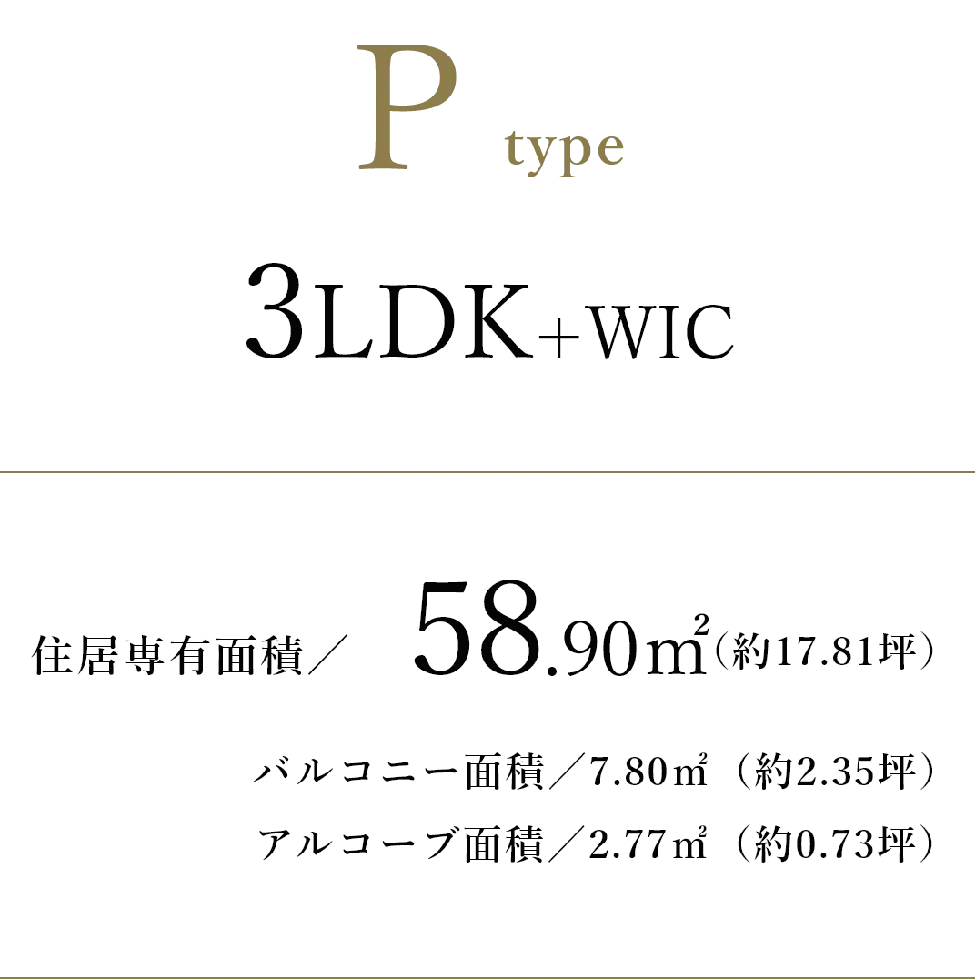 - ※1 返済例/タイプ:Pタイプ 専有面積 58.90㎡ 3LDK、5,398万円、自己資金 8万円、借入期間 50年、借入額 5,390万円の場合、月々89,489円(年12回)、ボーナス時加算100,649円(年2回) ※金利は2026年1月時点