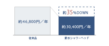 ※4 従来品シャワー:年間水使用量=約58,690L、年間ガス使用量=約174.1㎥、水道料金: 265円/㎥(税込)、ガス料金(都市ガス):196円/㎥(税込)(日本バルブ工業会調べ)、電気料金: 27円/kWh(税込)(全国家庭電気製品公正取引協議会調べ)(2022年12月現在)