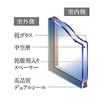 2枚のガラスの間に乾燥空気層を設置することで断熱性を高め、エアコンの消費電力量も削減。