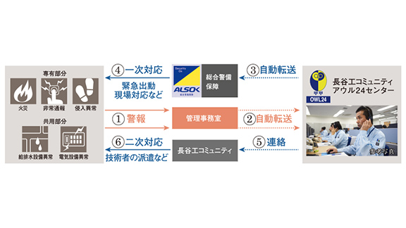 ※夜間や休業日(土・日・祝祭日、年末年始、夏季等会社休業日)は、アウル24センター(マンション監視センター)にて受付いたします。