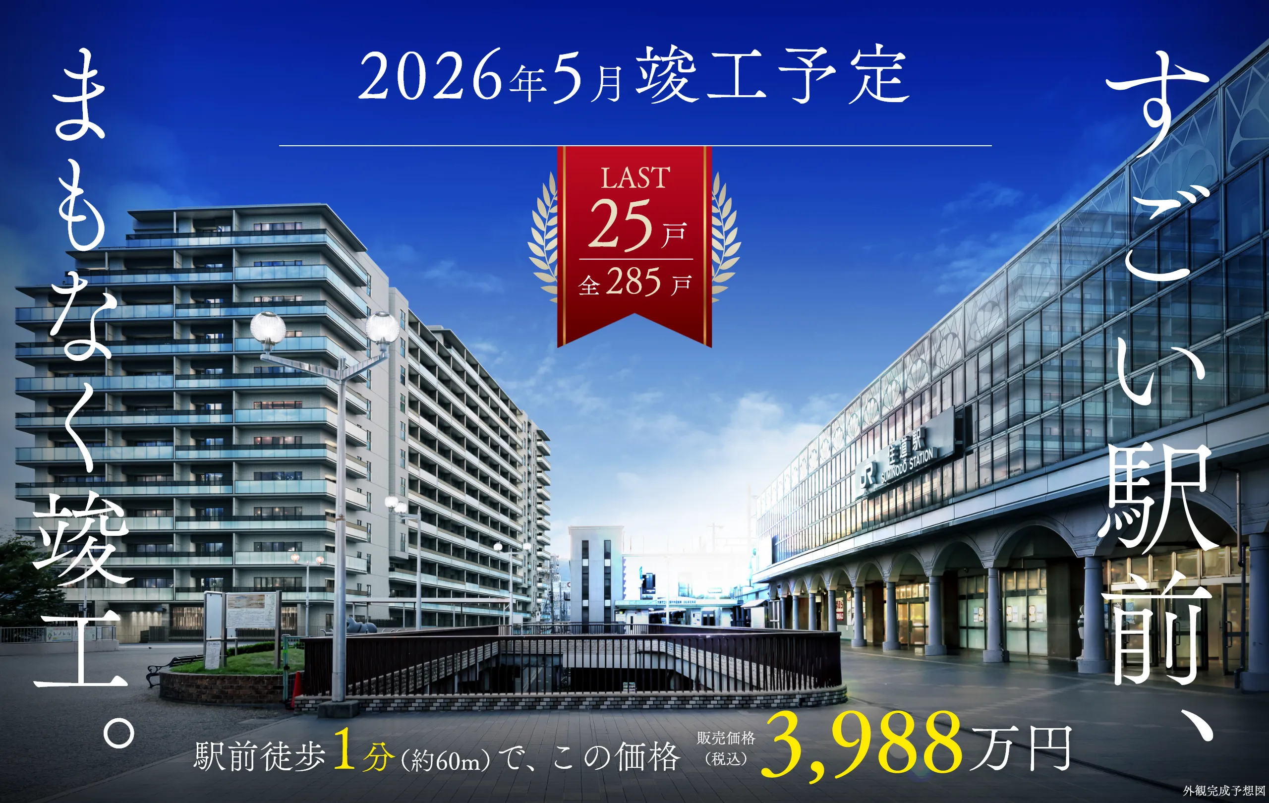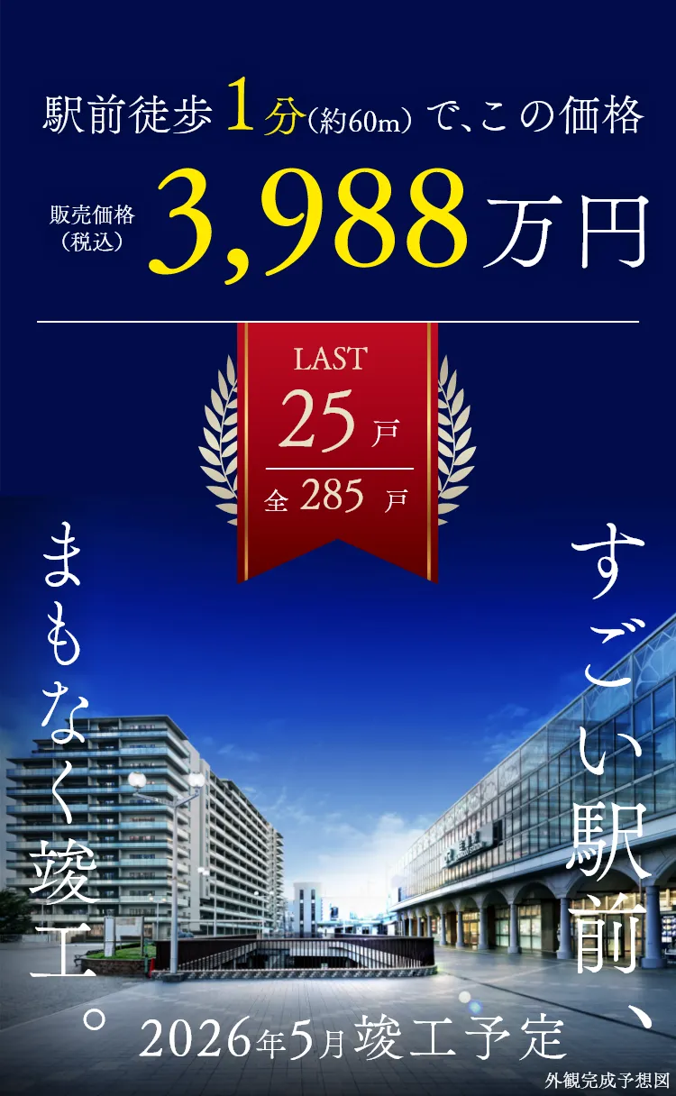 - ※1 最大級:2010年以降関西圏(大阪府、京都府、兵庫県、滋賀県、奈良県、和歌山県)で分譲された新築マンションにおいて、駅デッキと直結では本マンションが最大規模となります。(20階建以上のタワーマションを除く、2023年10月時点MRC調べ)