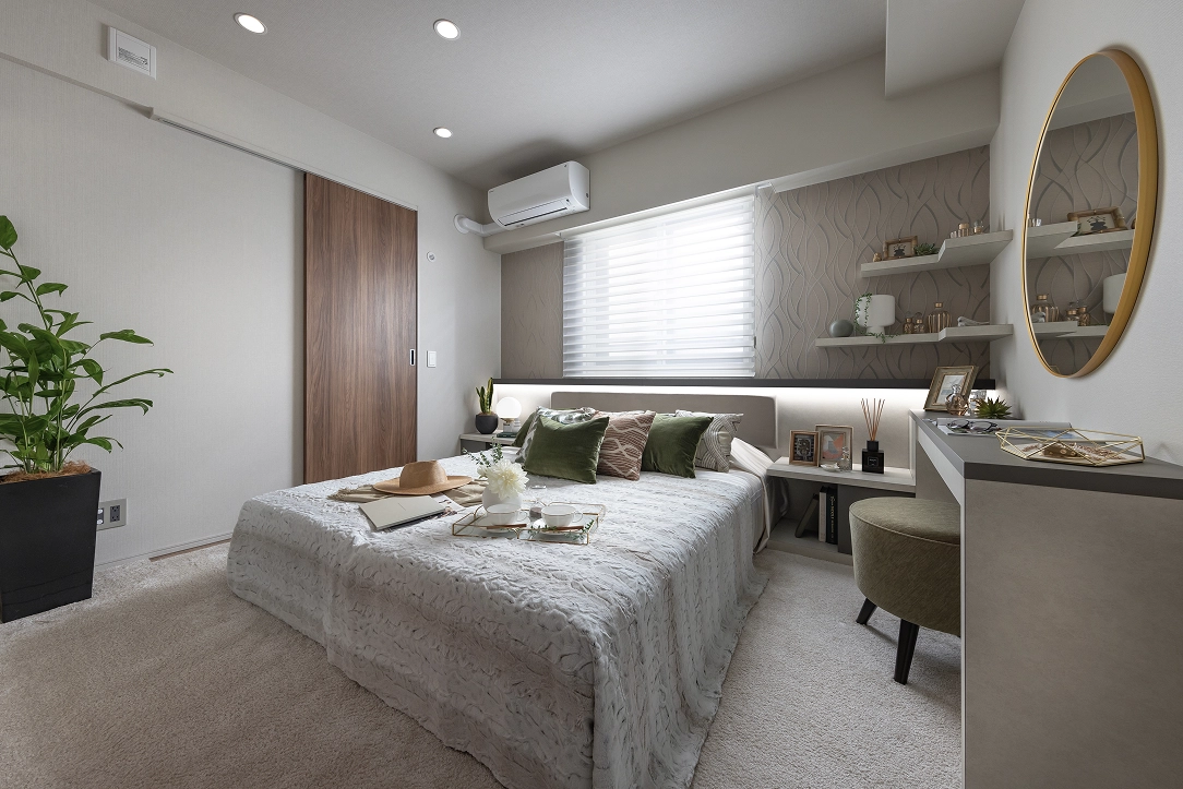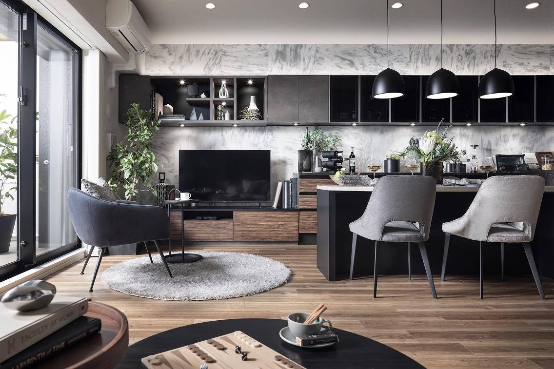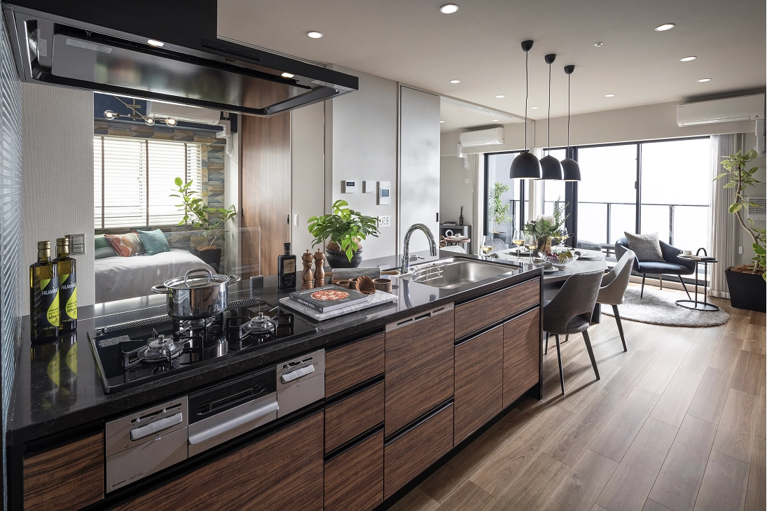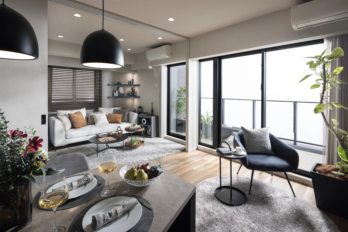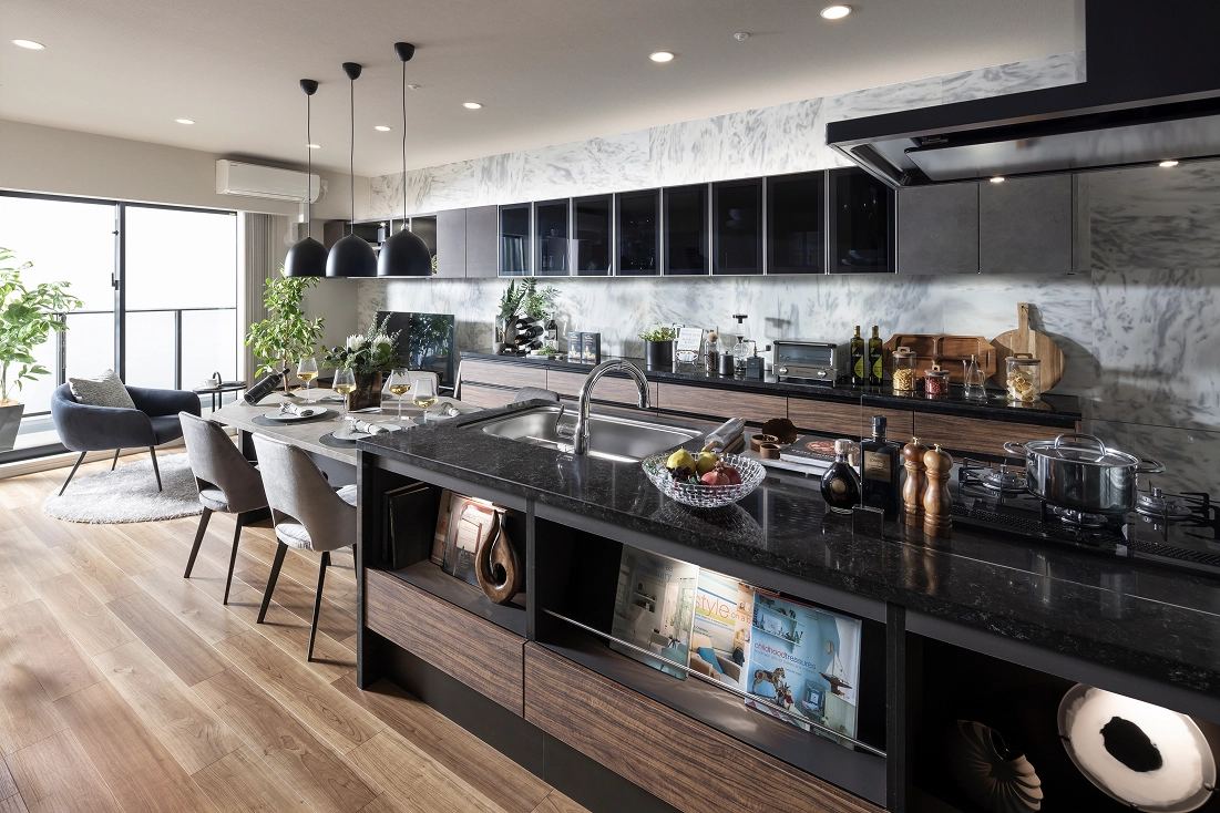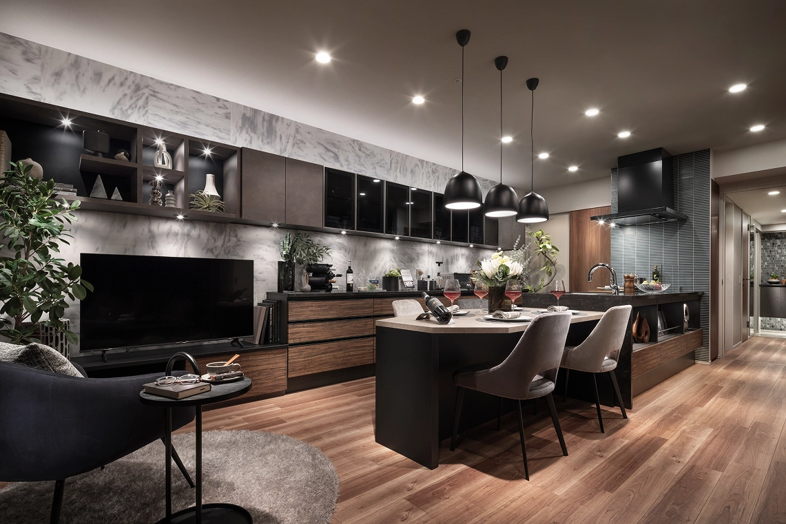※掲載の写真はモデルルーム(Dタイプ、一部有償オプション含む)を撮影(2025年10月)し、一部加工したものです。また、有償オプションの他、家具・備品等は販売価額に含まれておりません。有償オプションには申込期限があります。また、有償オプションはお部屋のタイプ、階数によって設置できないものがございます。眺望は住戸の向き・階数によって見え方が異なります。周辺環境、眺望は将来にわたり保証されるものではございません。