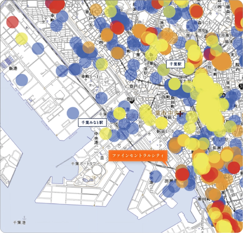 ※掲載の距離はサブエントランスから計測したものです。 ※掲載の開発情報(出典):千葉市公式ホームページ(https://www.city.chiba.jp/toshi/toshi/shigaichi/saikaihatu.html)その他 ※掲載の現地周辺概念図は現地周辺を書き起こしたイメージで、地形や建物、樹木の形状は実際とは異なります。 ※掲載の環境写真は2023年10月~2023年11月に撮影したものです。 ※距離表示については地図上の概算距離を算出したもので、徒歩1分=80mとして算出(端数切り上げ)しています。信号待ち等により所要時間は異なります。 ※センターラインのある道路は横断歩道をわたるルートで計測しています。 ※自転車は250mを1分として、徒歩ルート上を走行した場合の参考表示です。交通ルールや階段などは考慮していません。