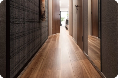 住戸内は段差の少ないフラットフロアを採用。ロボット掃除機も動き回れます。