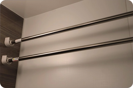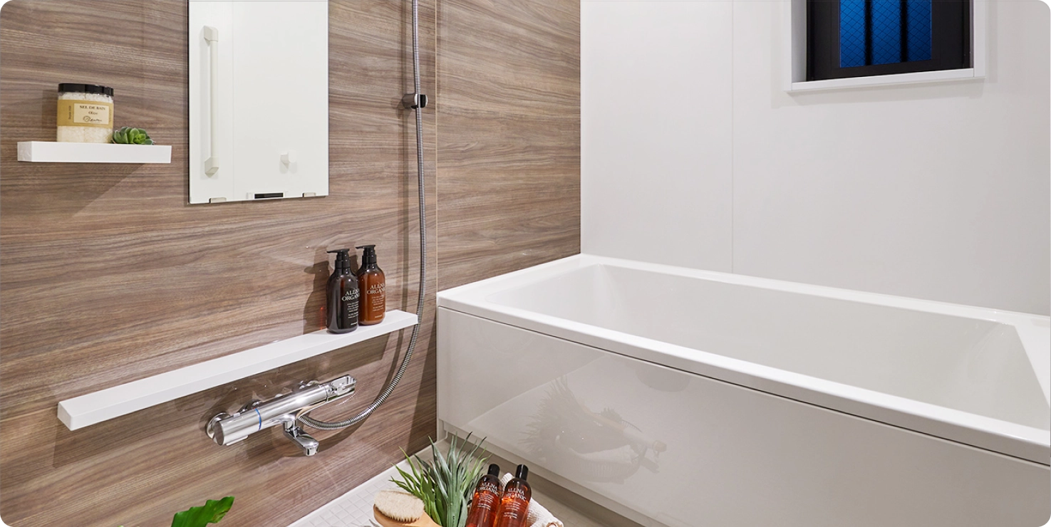 ガスコンロ横の壁は、優れた耐久性と耐熱性を備えたホーローキッチンパネルを採用。汚れを落としやすく、マグネットも利用できて便利です。