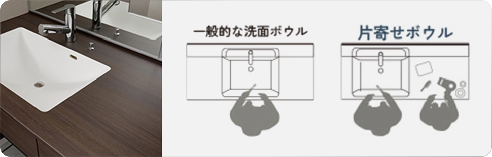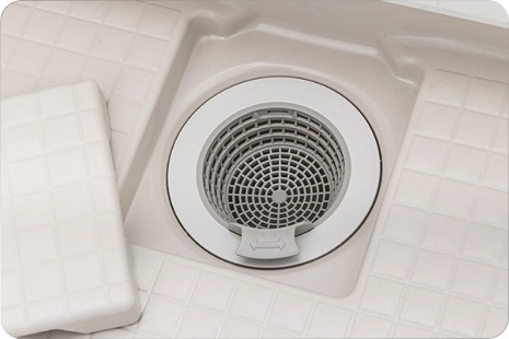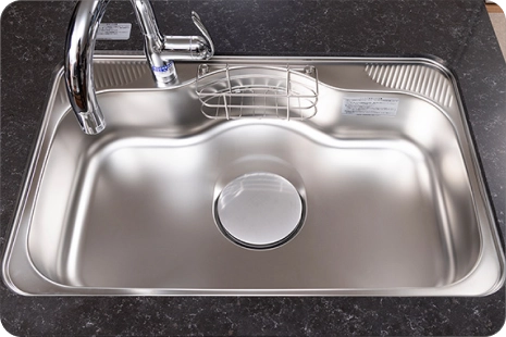 水はね音や食器類が当たる音を低減する静音仕様。食器類もゆとりで洗えるワイドサイズのシンクです。