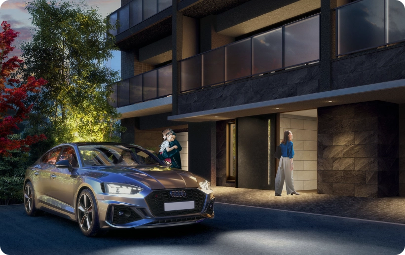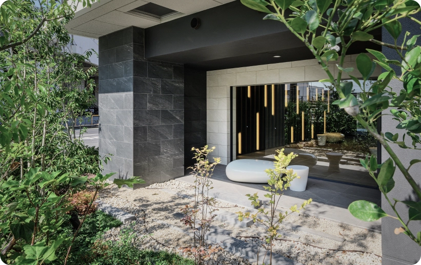 帰宅するたびに、気持ちが華やぐような洗練されたデザイン。瑞々しい緑が織りなす空間が、日々の疲れを癒し、住まう人々を優しく迎えます。この場所が、あなたの暮らしの始まりと終わりを美しく彩ります。