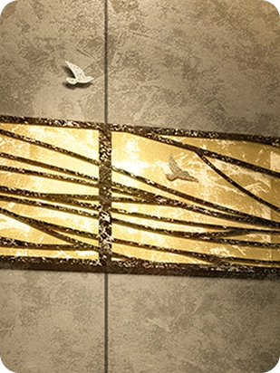 壁面に描かれたのは、光と影が織りなす風景の中を、空と海に抱かれながらゆるやかに舞う「コアジサシ」。千葉市の鳥として選ばれたこの小さな命は、住まう人の心に、やさしい希望の光を運びます。ふとした瞬間に、心をほどく。そんな時間が流れる空間を、エントランスに。