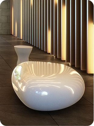 彫刻のように静かに佇むその存在が、空間全体に穏やかなリズムと、ここちよいゆとりをもたらします。