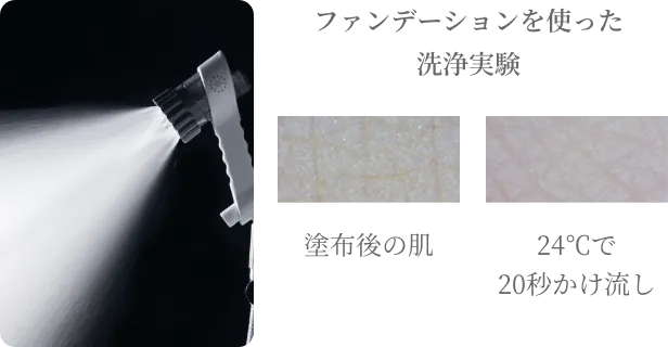※手の甲にファンデーションを塗り、20秒間トルネードミスト水流で洗浄。室温:24度 湿度:65% 水温:37度 測定日:2022/04/26株式会社キーエンス製 デジタルマイクロスコープ VHX-8000シリーズにて測定
