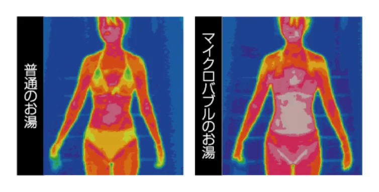 身体中の毛穴に入り込んだ超微細な気泡が、肌をほどよい刺激を与え、身体の芯から温まります。お風呂上がりに湯冷めしにくく、毎日温泉に入ったような気分を味わえます。