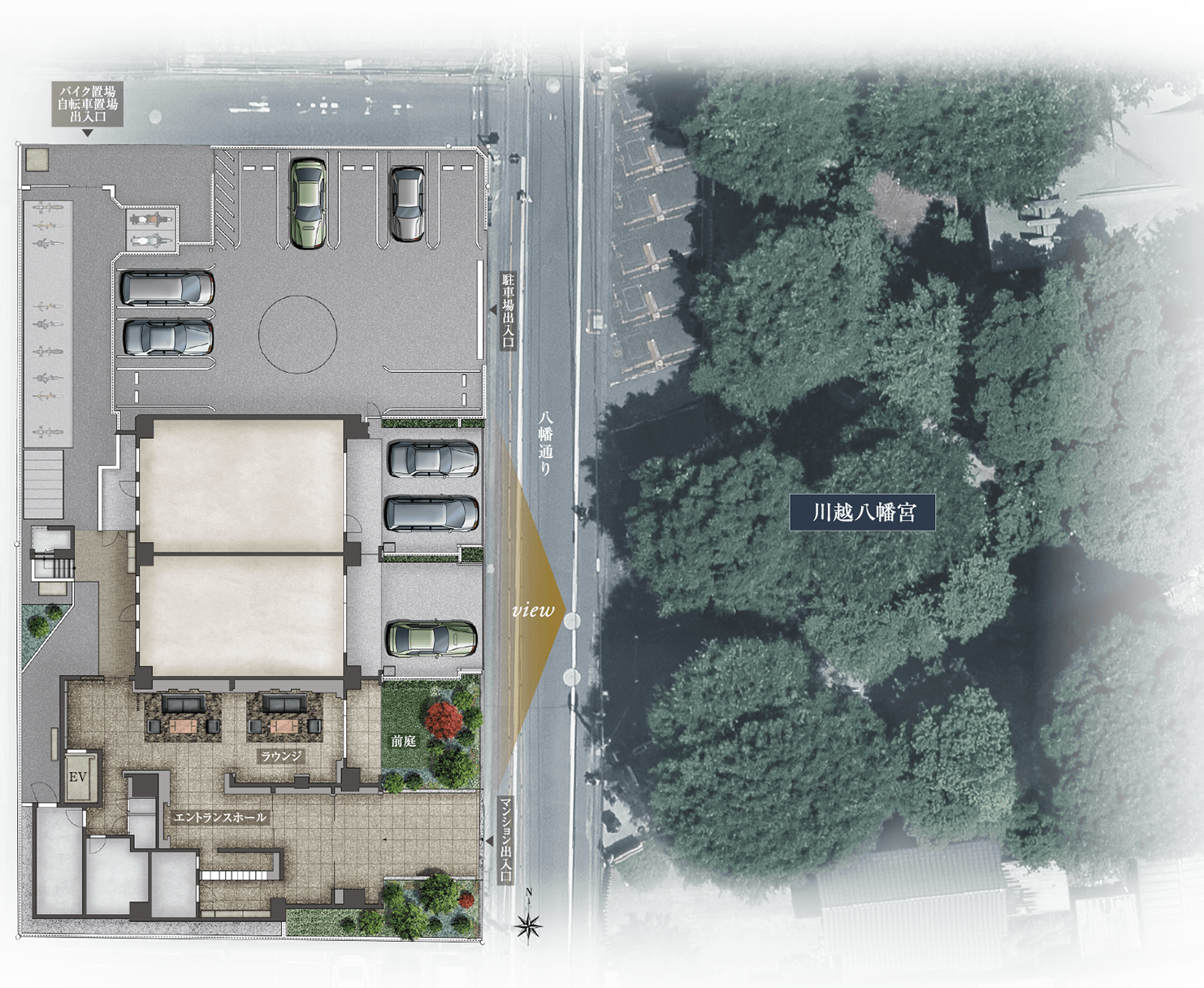 悠久の歴史を受け継ぎながら、未来への進化を続ける、川越。 創祀以来およそ千年の由緒を誇る「川越八幡宮」を目前とする地。 年輪を重ねた大樹の潤い、その先に広がる伸びやかな眺望を享受し、永く人々の想いを集め、街の暮らしを見守ってきた聖域に寄り添う、誇り高き場所。 この地に相応しい、伝統様式と厳選素材を活かした建築デザイン、果てしない開放感を取り込む巧みな空間設計により、時を経るほどに価値を磨き、次代の暮らしを託せる邸宅を求めて。