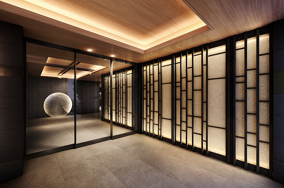 ※掲載の敷地配置イラスト・風除室・エントランスホール完成予想CGは計画段階の図面を基に描き起こしたもので、形状・色等は実際とは異なります。各種形状の細部、給湯器・雨樋等の設備機器等は省略・又は簡略化しています。 植栽は特定の季節(時期)の状況を示したものではなく、樹種や本数は今後変更になる可能性があります。竣工時には完成予想CG程度には成長しておりません。