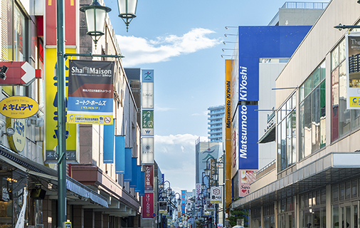 街のメインストリートである「クレアモール」には、「丸広百貨店」をはじめ新旧の多彩な店舗が軒を連ね、多くの人で賑わっています。
