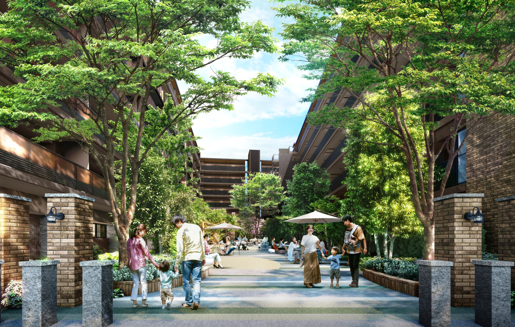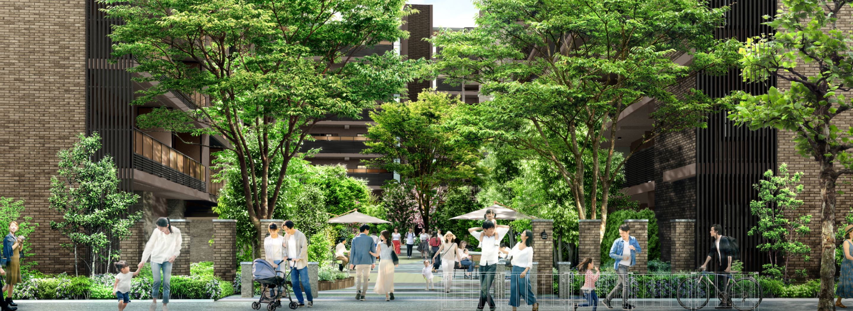 人が出入りする動線と車や自転車が行き来する動線を明確に分けた安全設計。