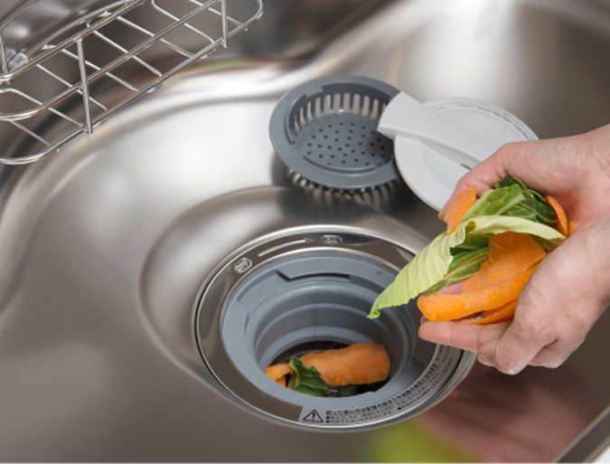 生ゴミを粉砕し、水と一緒に流す専用の排水処理装置。生ゴミ処理の手間が省けます。