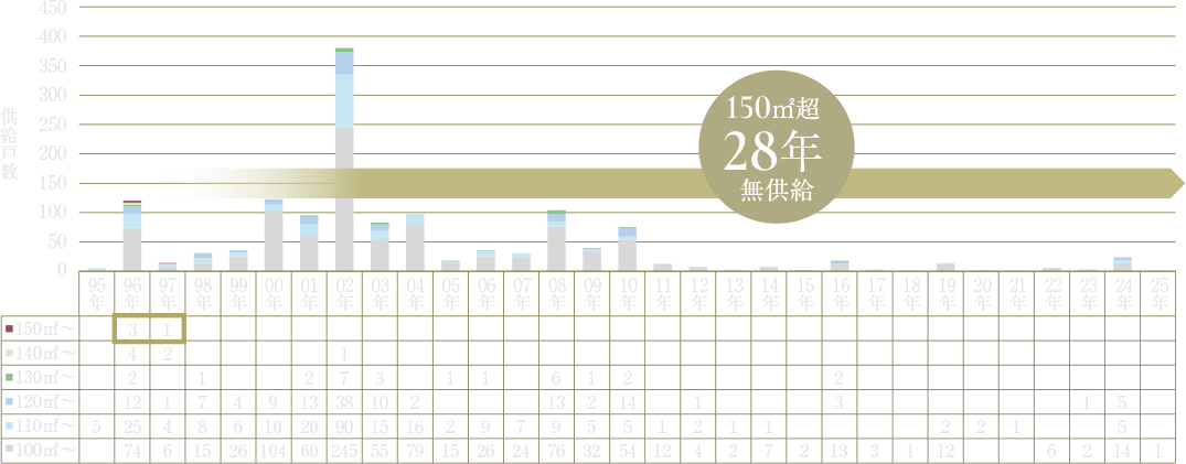 中央線(東中野〜高尾)沿線でこの広さが分譲されたのは実に28年ぶり。