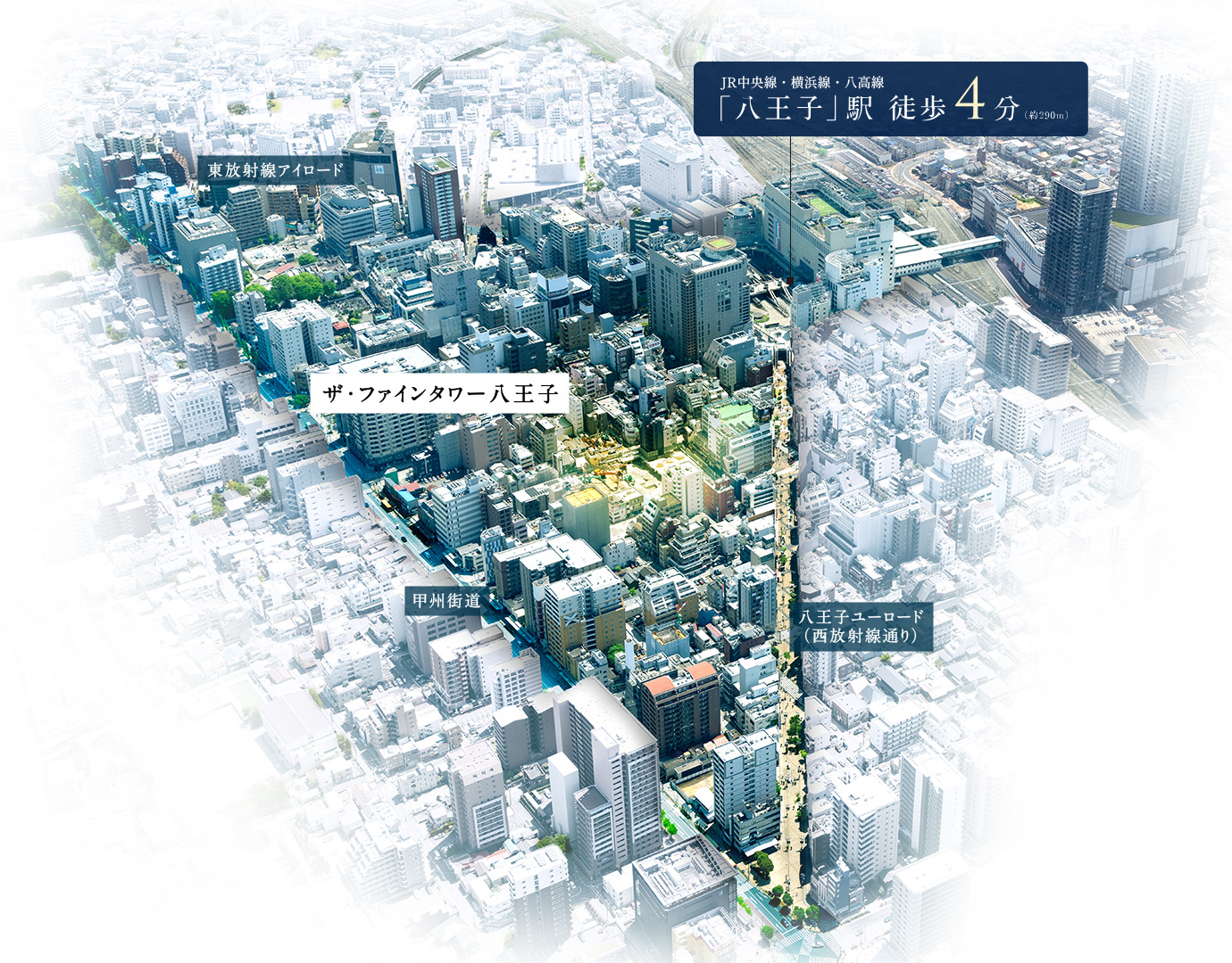 ※八王子の中心とは八王子市中心市街地活性化基本計画の中心市街地エリア内に本物件が立地することから表現しています。