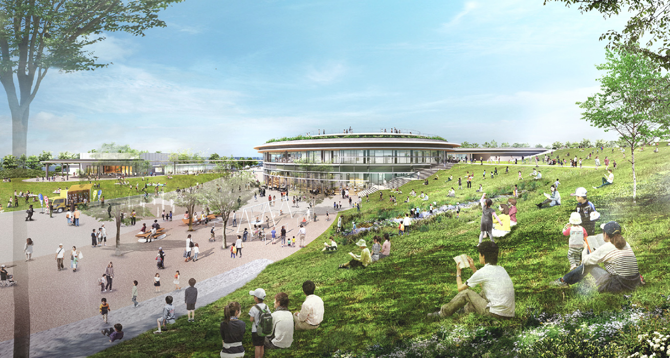 周囲を緑で繋ぐ「緑景」と地域に対して開いた「広場」を創造。