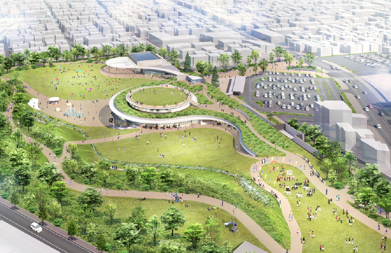 八王子駅南口に位置する八王子医療刑務所跡地の広大な敷地に、八王子の新たなシンボルとして「桑都の杜」が誕生。公園・ライブラリ・交流スペース・ミュージアムなどが一体になった複合機能施設を整備しています。