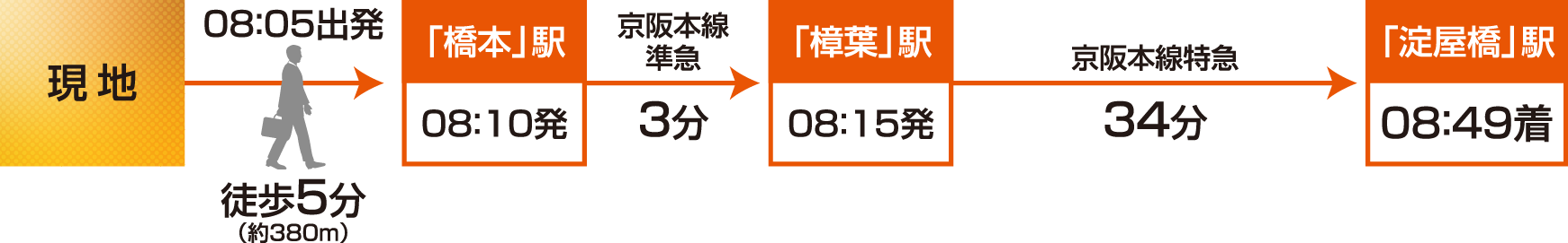- ※京阪本線「橋本」駅 現地より約380m、名神高速道路「大山崎IC」 現地より約4,850m、第二京阪道路「八幡東IC」 現地より約7,900m。