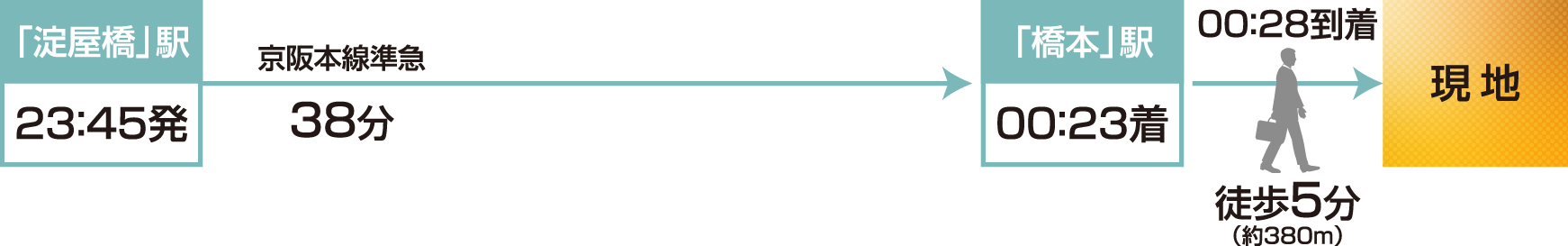 ※「枚方市」駅にて特急に乗り換え、「京橋」駅でJR大阪環状線に乗り換え