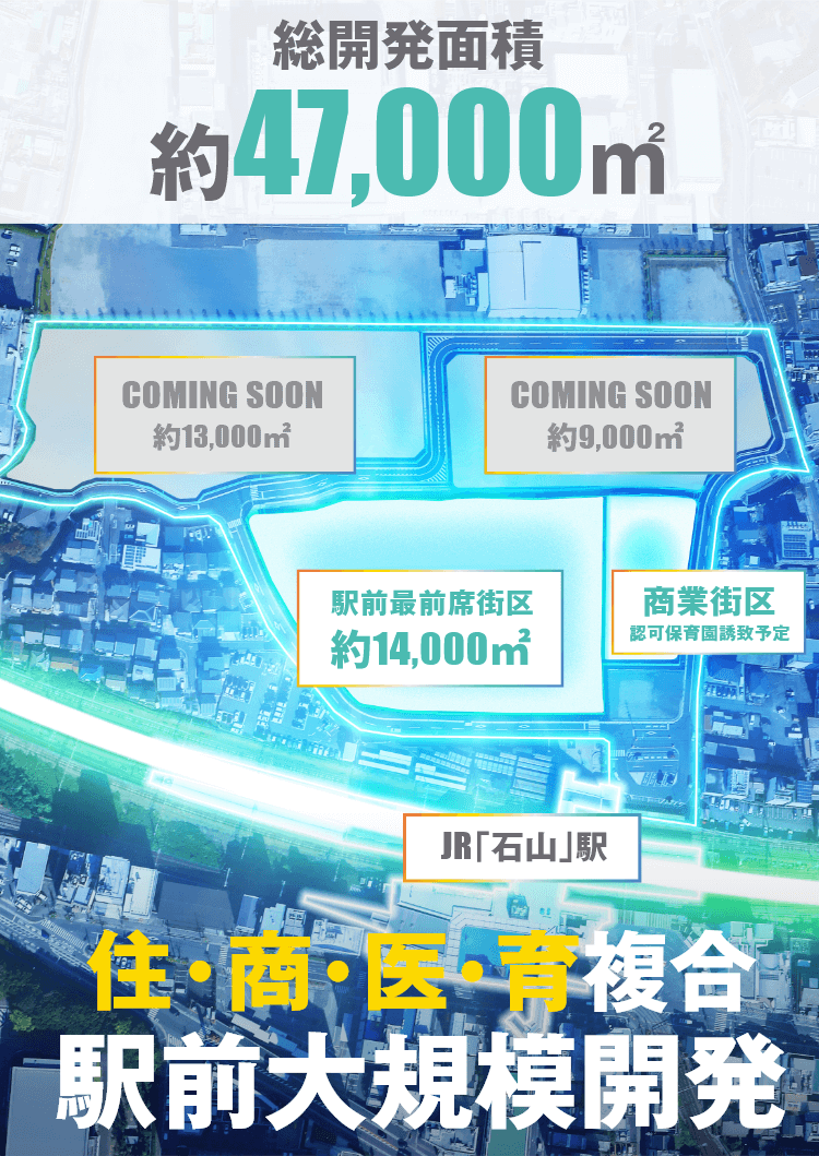 総開発面積約47,000㎡が、石山駅前の
