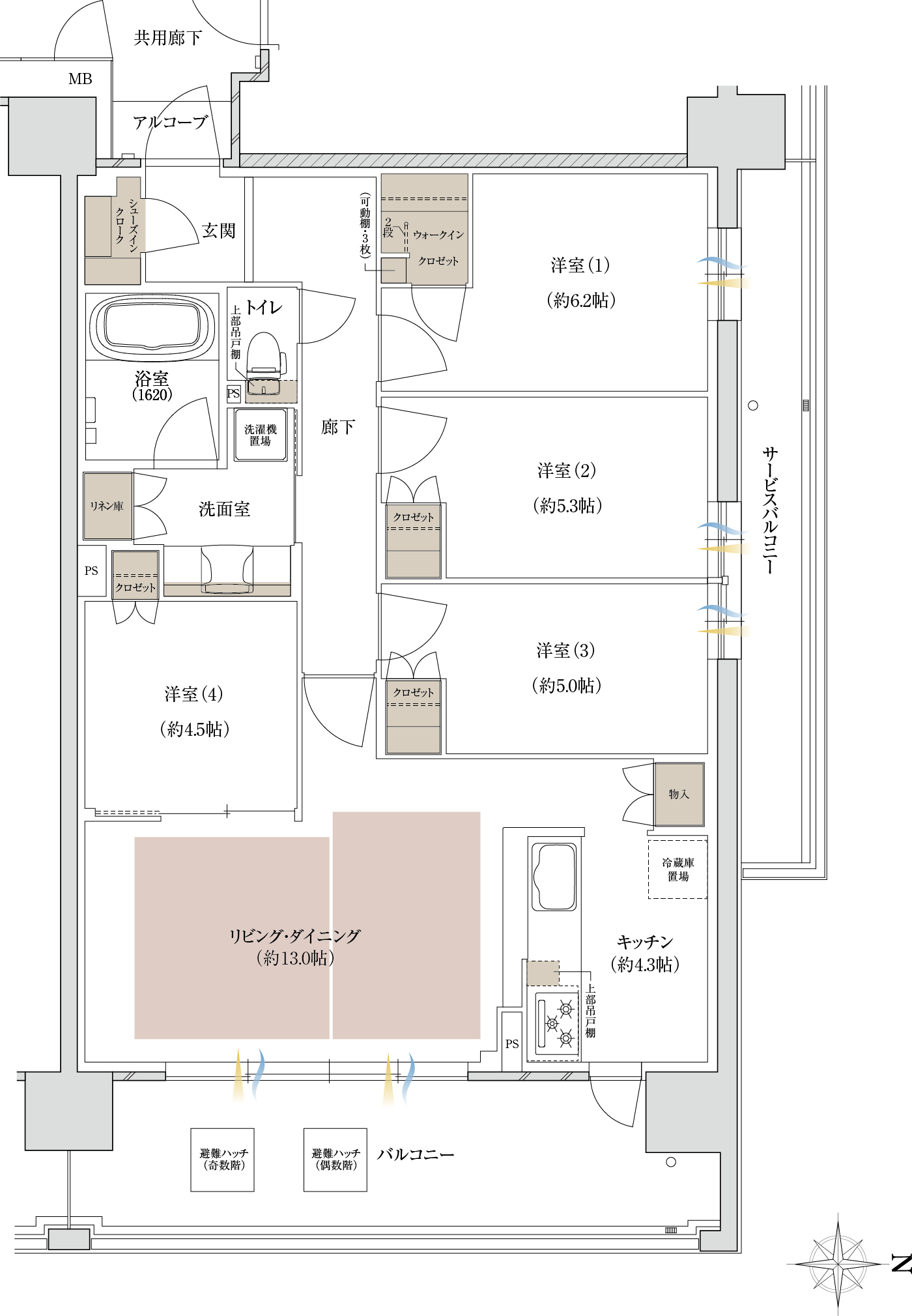 - ※方位記号は若干誤差があります。正確な方位については設計図書でご確認ください。
